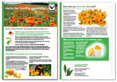 Herb of the Month: Marigold, herb of the sun.Download the newsletter in PDF format. If you would like a printed version in the post, or to distribute all or part of the newsletter please contact me on 01722 330663.